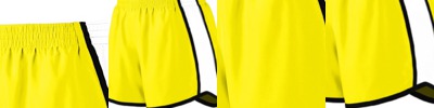 Shell is 100% polyester micropoly ; Inserts are 100% polyester mesh ; Lining is 100% polyester wicking crepe ; Liner wicks moisture ; Junior fit ; Low-rise; Covered elastic waistband with inside drawcord ; 3.5" inseam;