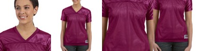 3.7 oz., 100% polyester wicking knit; Wicks moisture away from the body; Self-fabric collar; Heat-sealed label; Set-in sleeves; Double-needle hemmed bottom; Ladies' fit; Self-fabric V-neck collar; Double-needle hemmed sleeves;