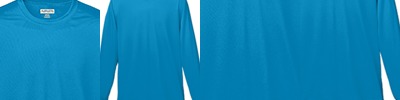 100% polyester wicking knit; 92% polyester, 8% spandex wicking pinhole mesh underarms; Color secure technology helps prevent dye migration; Contrast color inserts; Raglan sleeves; Longer length, shirt stays tucked in; Tagless label;