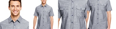 2.8 oz. 55/45 cotton/polyester; 2 chest pockets with button flaps; Hem sleeves ; Chainstitching on bottom hem; Modern Fit;