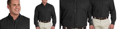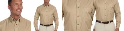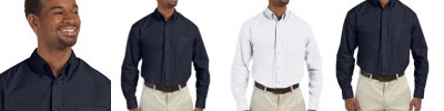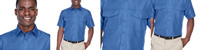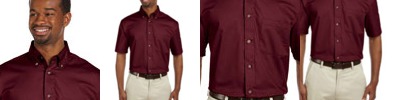 55% cotton, 45% polyester with stain-release; Extra stitching at seams and buttons; Flat-felled seam finishing; Wrinkle-Resistant; Short-sleeves; Full back yoke and back pleat; Button-down collar and left-chest pocket;