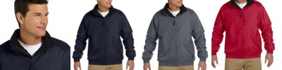 100% nylon taffeta; Wind- and water-resistant; Front welt pockets; Raglan sleeves with full elastic openings; Snap center front opening and open-bottom hem finish; InconspicuZip™ on inside for easy embroidery access; Heather Grey jersey lining (Sunray Yellow lined in White);