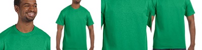 4.5 oz., 100% combed ringspun cotton jersey; Topstitched ribbed collar; Taped neck with EasyTear™ label; Double-needle hemmed sleeves and bottom; White is sewn with 100% cotton thread; Heather is 93% cotton, 7% polyester;