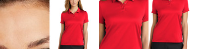 This polo delivers timeless style and performance with ultra-smooth double pique and Dri-FIT moisture management technology. Design features include a streamlined self-fabric collar and open hem sleeves. Tailored for a feminine fit with a five-button placket. A heat transfer contrast metallic silver Swoosh design trademark is on the left sleeve. Made of 6-ounce, 100% polyester Dri-FIT fabric.