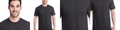 4.2 oz., polyester/combed ringspun cotton/rayon, 30 singles; Solid white, tri black, tri cranberry, tri light asphalt, tri midnight, tri navy, tri plum, tri royal blue, tri steel blue are 50% polyester, 25% cotton, 25% rayon; Tri athletic grey, tri burgundy, tri charcoal, tri denim, tri dark grey, tri maroon are 50% polyester, 38% cotton,12% rayon; Taped shoudler-to-shoulder; Double-needle sleeves and bottom hem; Made in the USA;