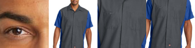 - 65/35 poly/cotton with soil-release finishYarn-dyed fabricOpen collar with sewn-in staysMelamine collar buttonMelamine buttonsTwo button-through pocketsBartacked pencil stall on left pocket