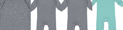 5.0 oz., 100% combed ringspun cotton 1x1 baby rib ; CVC Colors are 60/40; Heather is 88/12 combed ringspun cotton/polyester; White is sewn with 100% cotton thread; Flatlock stitched seams, Side seam construction; Double needle ribbed binding on lap shoulder neck, shoulders, sleeves, leg opening; Innovative three-snap closure; Snap Tape Technology that keeps kids safe and secure; EasyTear™ label; CPSIA Compliant tracking label in side seam;