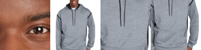 Colorblocking on the hood, shoulders and arms provide striking contrast against the rich, heather body color of this sweat-wicking essential. Double-knit construction, a full athletic cut and enduring color means it will quickly become a go-to choice for time in the gym or hanging with friends.
