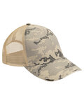 100% washed cotton twill front panels and visor; 100% polyester soft mesh back panels; Structured; Mid-profile; 6-panel; Self-adhesive closure; Matching top button and sewn eyelets; Contrast stitching on visor and self-fabric sweatband;