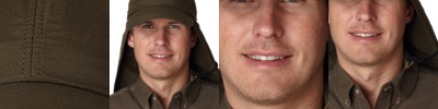 70% cotton, 30% polyester; UPF 45+ protection; Stain-resistant coating; Wide brim; Mesh ventilation insert in crown; Green under visor reduces glare; Adjustable chin strap with pull-up fabric chin lock; Interior self-adhesive closure pocket4”w x 2”h imprint area;