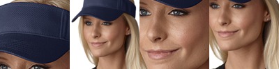 100% cotton twill visor; Vat-dyed true color, garment washed; Three panel; Pre-curved visor; Self-fabric adhesive closure; Black absorbent terry cloth sweatband; Black under visor reduces glare;