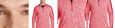 By mixing heather with a solid color and adding reflective hits, this moisture-wicking pullover has a technical look plus plenty of stretch for easy movement. 6.8-ounce, 90/10 poly/spandex jersey Soft-brushed backing Tag-free label Reflective details on right sleeve and lower back Cadet collar Reverse coil zipper Raglan sleeves Open cuffs and hem