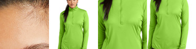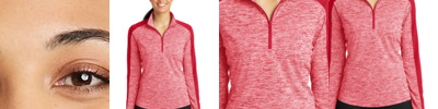 By mixing heather with a solid color and adding reflective hits, this moisture-wicking pullover has a technical look plus plenty of stretch for easy movement. 6.8-ounce, 90/10 poly/spandex jersey Soft-brushed backing Tag-free label Reflective details on right sleeve and lower back Feminine curved and blocked design details on back Cadet collar Reverse coil zipper Princess seams Raglan sleeves Open cuffs and hem Thumbholes to keep hands warm Drop tail hem