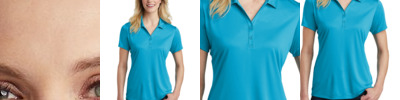 Our color-locking polo has a soft hand, wicks moisture and is energized with an allover heather pattern. 4.1-ounce, 100% polyester jersey with PosiCharge technology Removable tag for comfort and relabeling Self-fabric collar Taped neck 4-button placket with dyed-to-match buttons Princess seams Set-in, open hem sleeves Curved drop tail hem