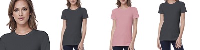 4.3 oz., 52% cotton 48% polyester, 30 singles; Ultra-fine cotton blend; Fashion fit; Side seams; Clean-finished curved bottom hem; Tear-away label; Made in a w.r.a.p. certified factory;