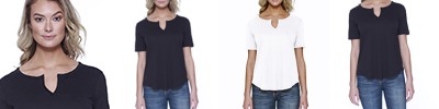 30 singles; 4.3 oz., 52% cotton 48% polyester; Ultra-Fine Cotton Blend; Fashion fit; Side seams; Moroccan style neck; Relaxed fit; Tear-away label; Made in a W.R.A.P. certified factory;