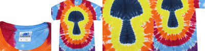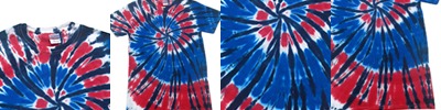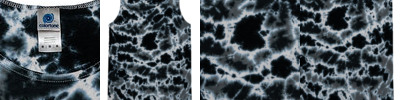 8.5 oz., 80% cotton, 20% polyester; Hand-dyed color combinations; No two are exactly alike; Wash separately; Reactive dyed tie-dye;