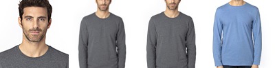 100% Cotton; no two are exactly alike; double-needle stitching throughout; seamless rib at neck;