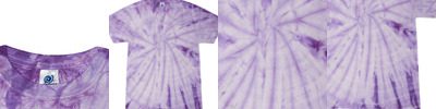 5.3 oz. pre-shrunk 100% heavyweight cotton; No two shirts are exactly alike; Wash seperately;
