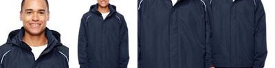 Shell: 3.39 oz./ydý / 115 gsm, 100% polyester taslan with water-resistant finish; Lining: 100% polyester fleece in body; 100% polyester taffeta in sleeve and hood; Rollaway hood; Storm flap with hidden snaps with partial inside placket & chinguard; Center front coil zipper with autolock slider & reflective rubber toggle; Lower concealed pockets with zippers; Thermal retention shockcord at hood & hem; Elasticized cuffs; Audio port; Reflective piping at front and back yoke;