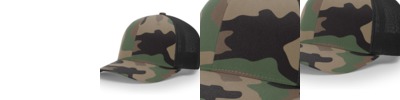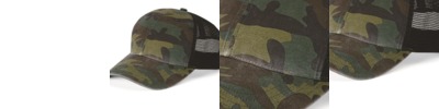 - Green Camo & Desert Camo are 97/3 cotton/ PU spandex, 100% polyester mesh back
